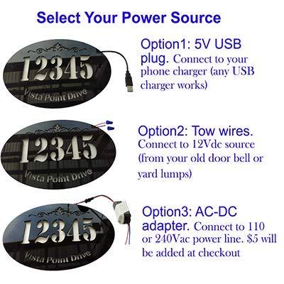 Backlit door numbers, made to order. Select your size, color, font and power sources.