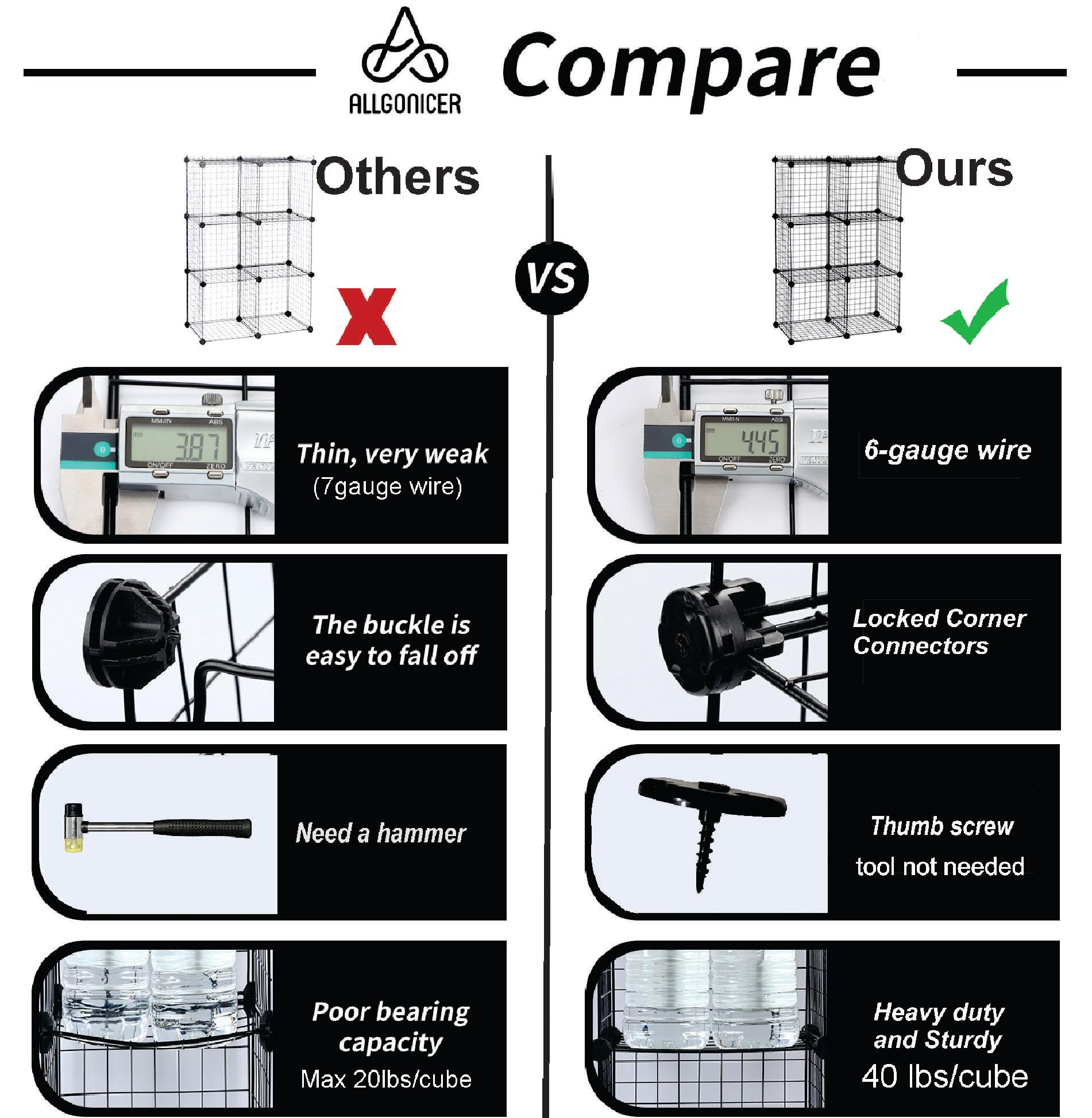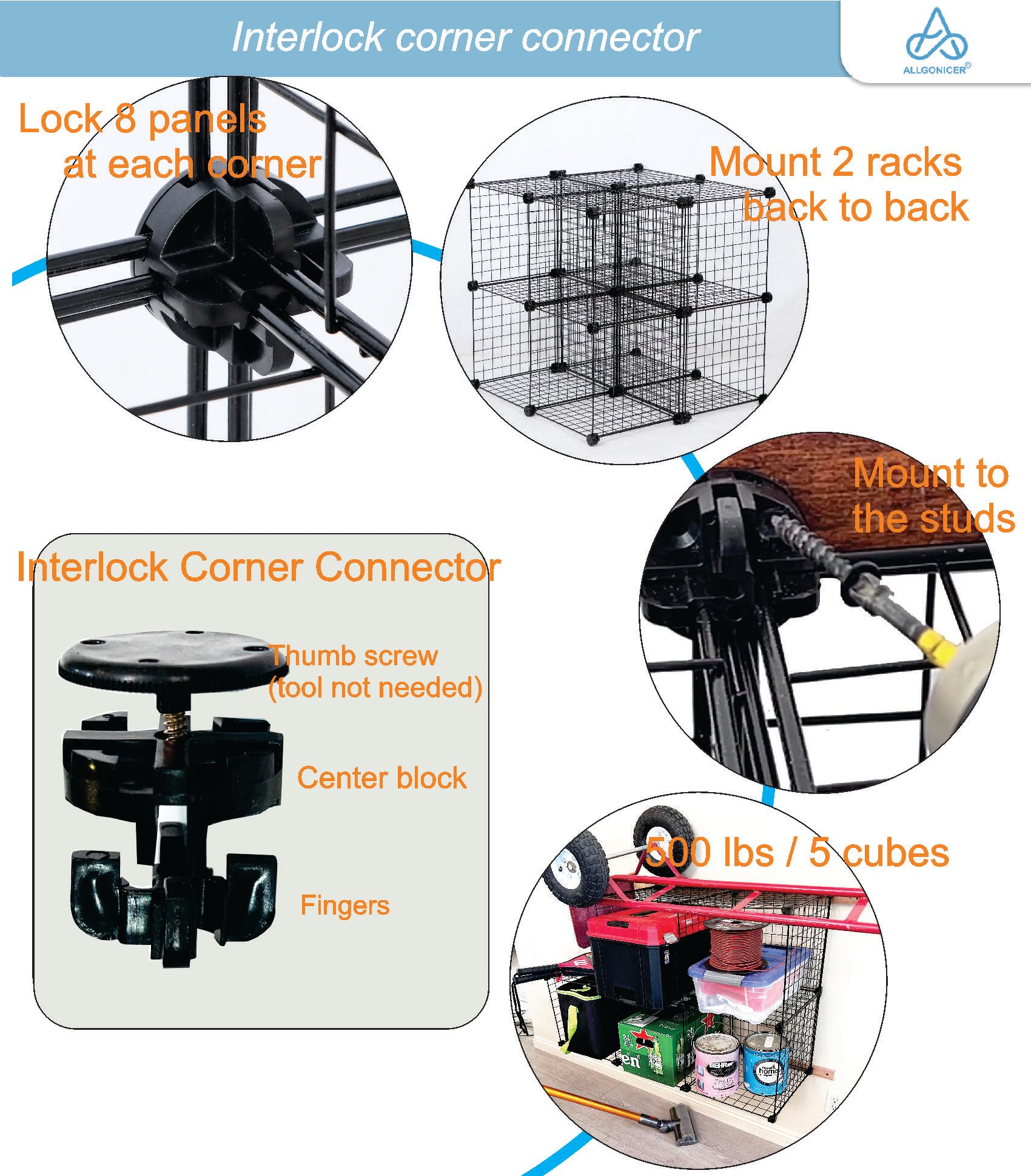 - Patented interlock corner connectors and 5-gauge thermal plastic-coated steel wire panels enable the cubes wall-hanging, sturdy and Secure.