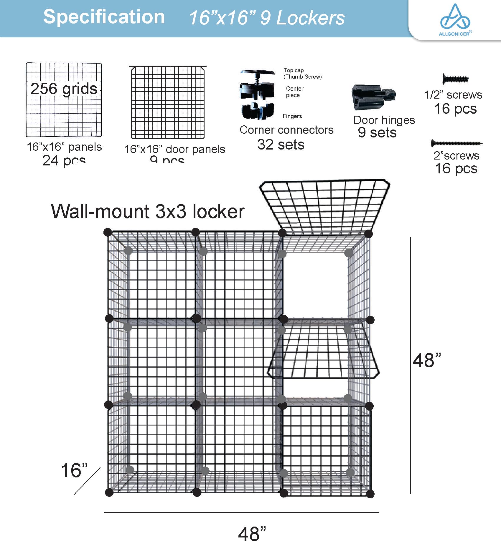 - DIY assemble wire grid panels into multiple cube storage lockers. Wall-mount or free-standing. Provide the freedom to combine or separate cubic units to fit your spaces.