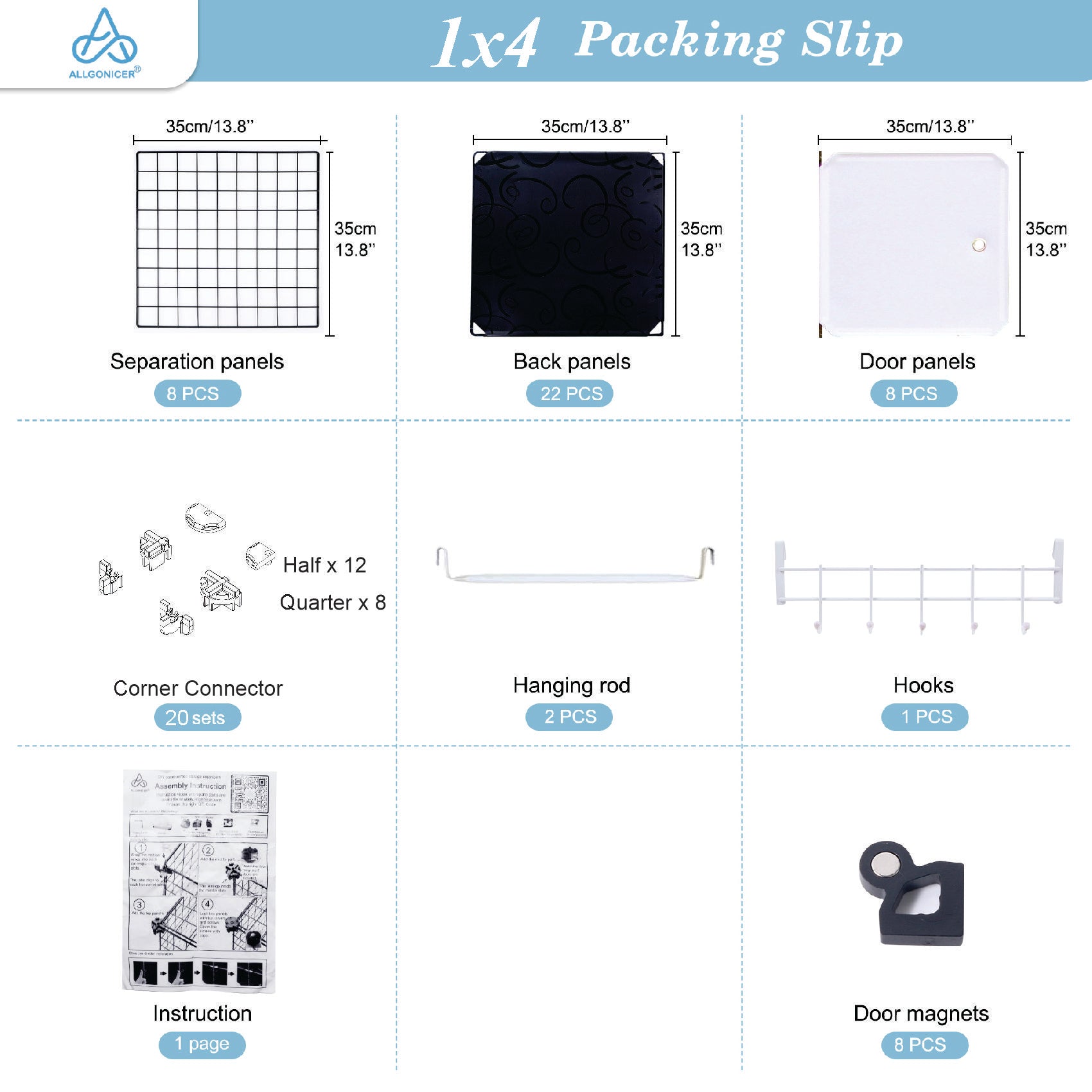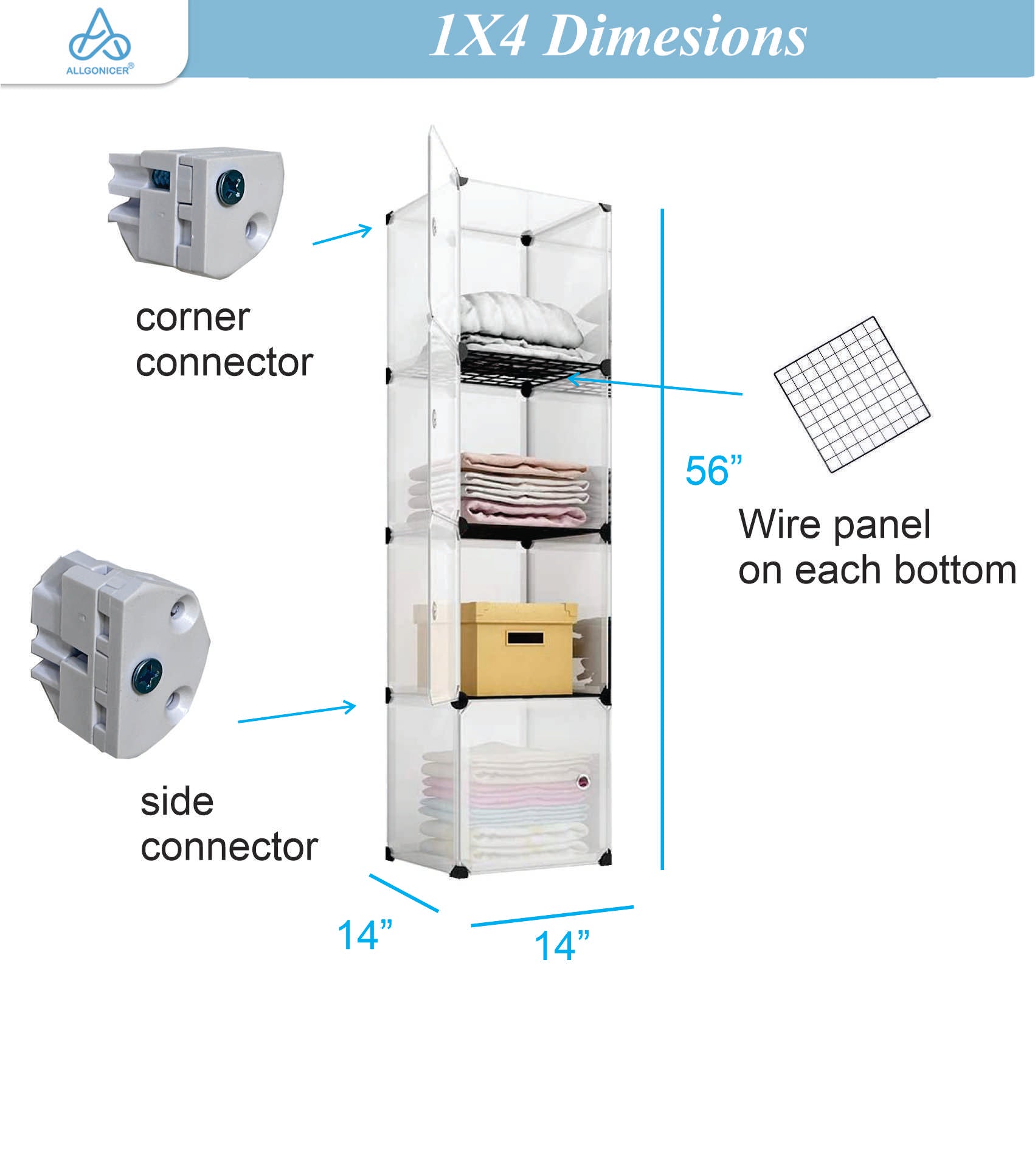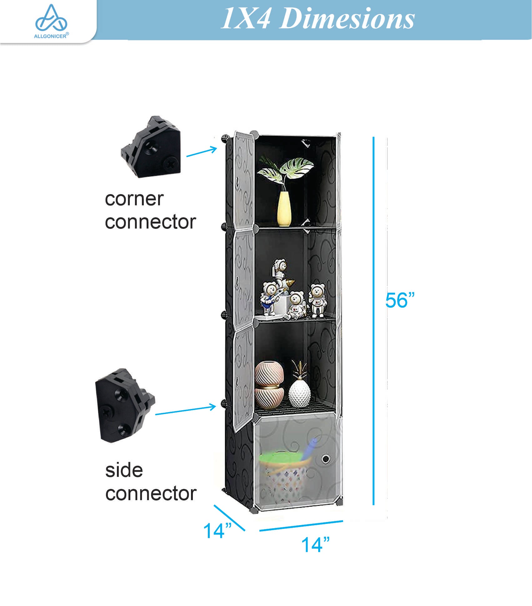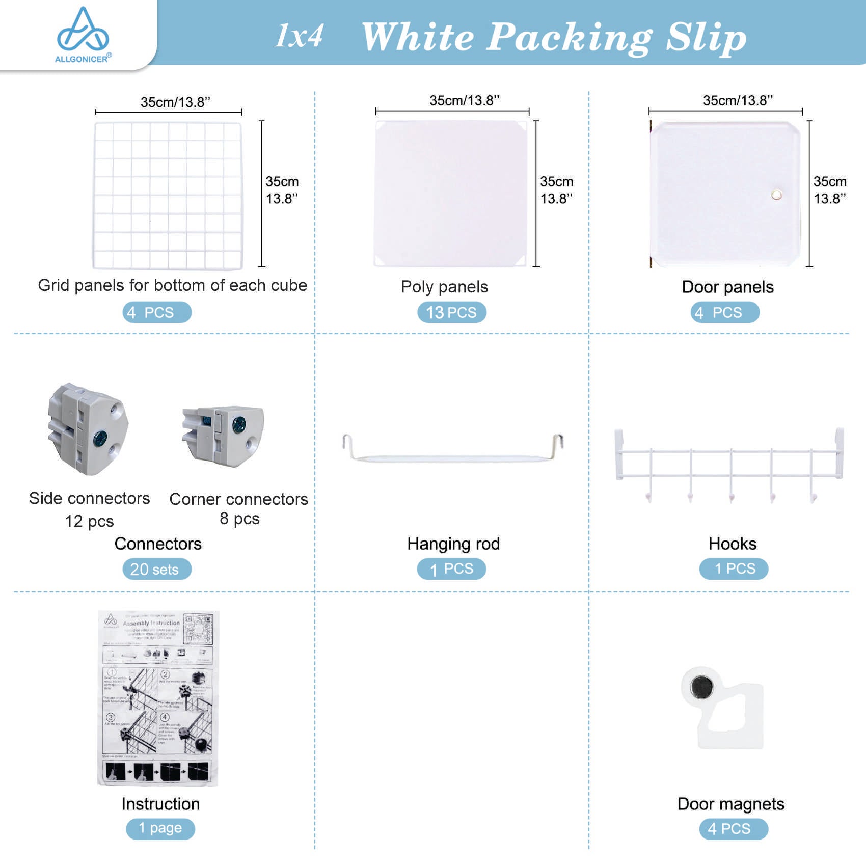 Poly Panel Storage Organizer Shelves, Floor-standing or Wall hanging (1Wx4H=4cubes)