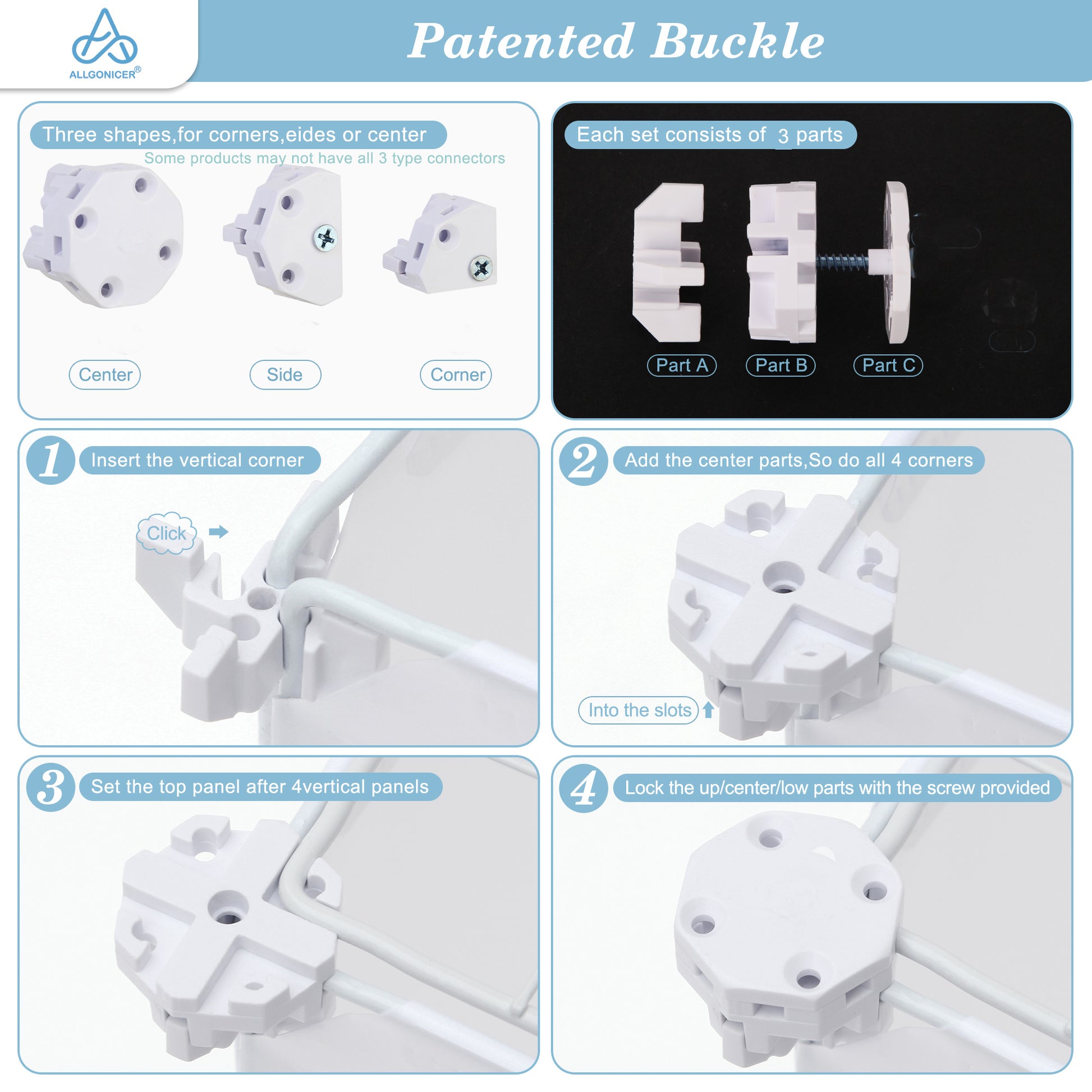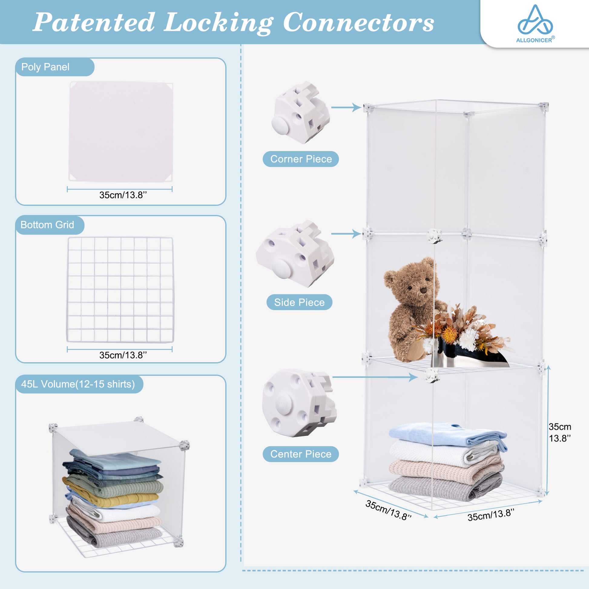 - Patented lockable corner connectors improve stability and enable floor standing or wall hanging, making the best use of your irregular spaces in your closet, garage, bathroom or office. Quarter or half shapes of corner connectors are provided.